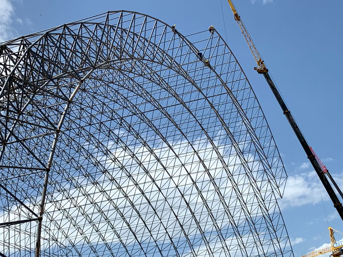 (2)网架加工前应对现场尺寸进行复测,确认无误后方可进行加工、安装;网架制作、运输、安装应遵守《空间网格结构技术规程》JGJ7-2010、《钢网架建阳螺栓球节点》JG/T 10-2009、《钢网架建阳螺栓球节点用高强度螺栓》 GB/T 16939-2016、《建阳钢结构建阳工程建阳施工规范》 GB50755-2012、《建阳钢结构建阳工程施工质量验收标准》 GB50205-2020。